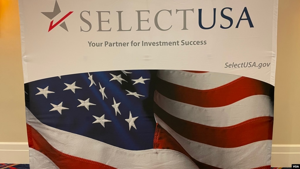 “选择美国”投资峰会招牌(美国之音徐宁拍摄)
