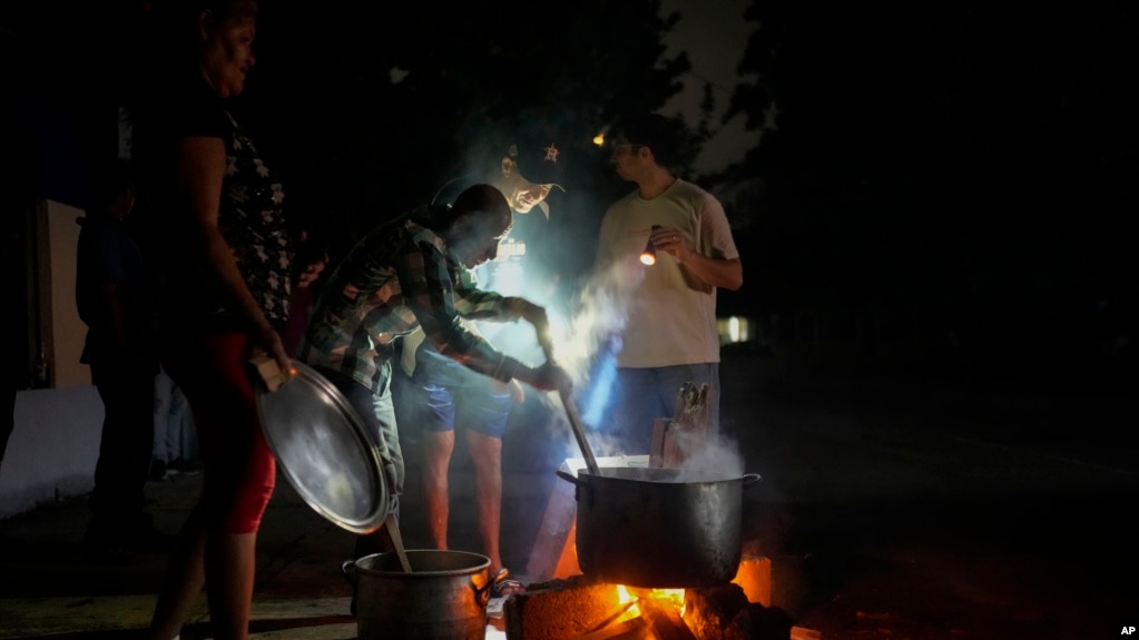 古巴首都哈瓦那民众在停电期间在室外生火做饭。(2024年10月19日)