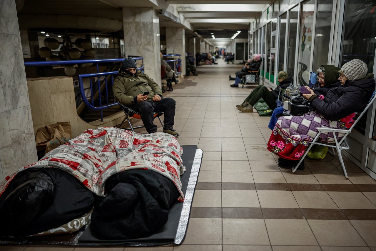 俄国20日早晨对乌发动无人机与飞弹攻击,导致首都基辅数以千计的公寓大楼在严寒天气中停电且供暖中断。图为民众躲进地铁站避难。路透