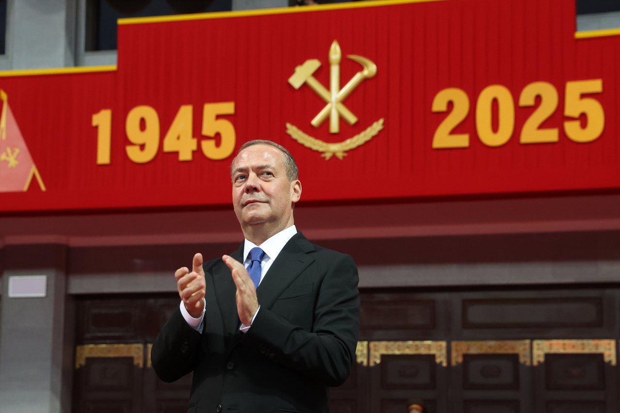 俄罗斯前总统麦维德夫(Dmitry Medvedev)9日出席北韩劳动党创立80周年纪念活动暨韵律体操表演。欧新社