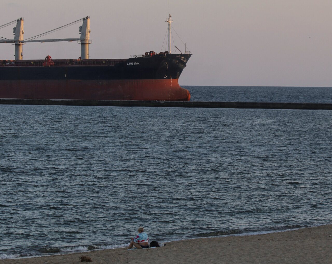 图为2023年,悬挂利比亚国旗的散装货轮抵达乌克兰敖德萨州黑海港的切尔诺莫斯克海港。路透