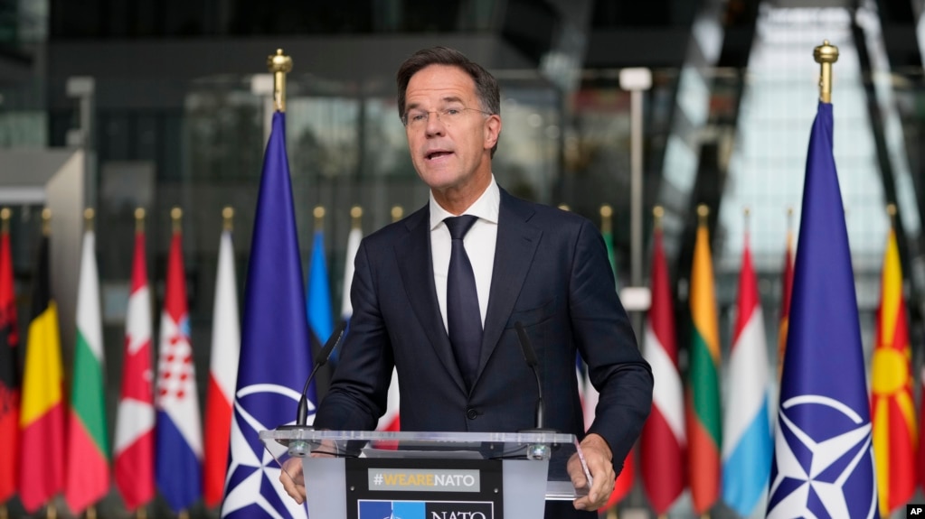 北约秘书长马克·吕特( Mark Rutte )在布鲁塞尔的北约总部发表声明。(2024年10月28日)