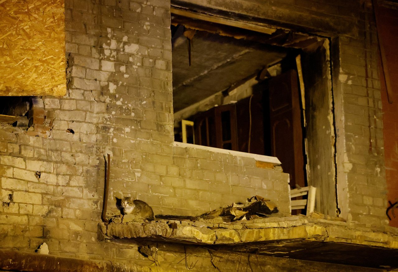 乌克兰战火持续,位于俄方控制的乌克兰城市顿内次克,一栋公寓楼在砲击后受损。(路透)