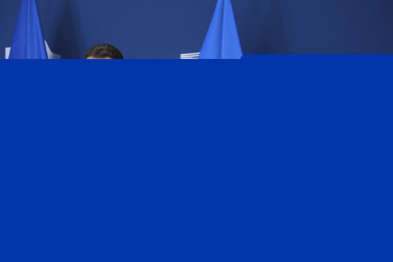 乌克兰总统泽伦斯基17日飞抵比利时布鲁塞尔,与欧盟主席范德赖恩见面,为18日与欧洲多位领袖联袂到白宫与川普总统谈判,力保乌克兰未来安全。图为泽伦斯基(左)与范德赖恩17日举行记者会。(美联社)